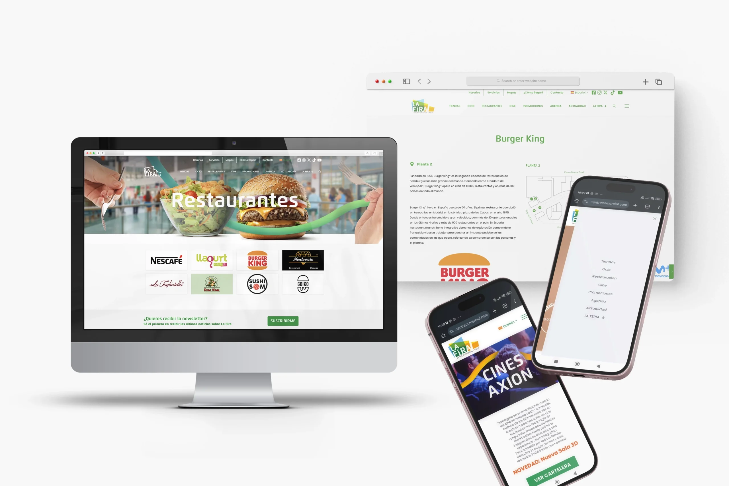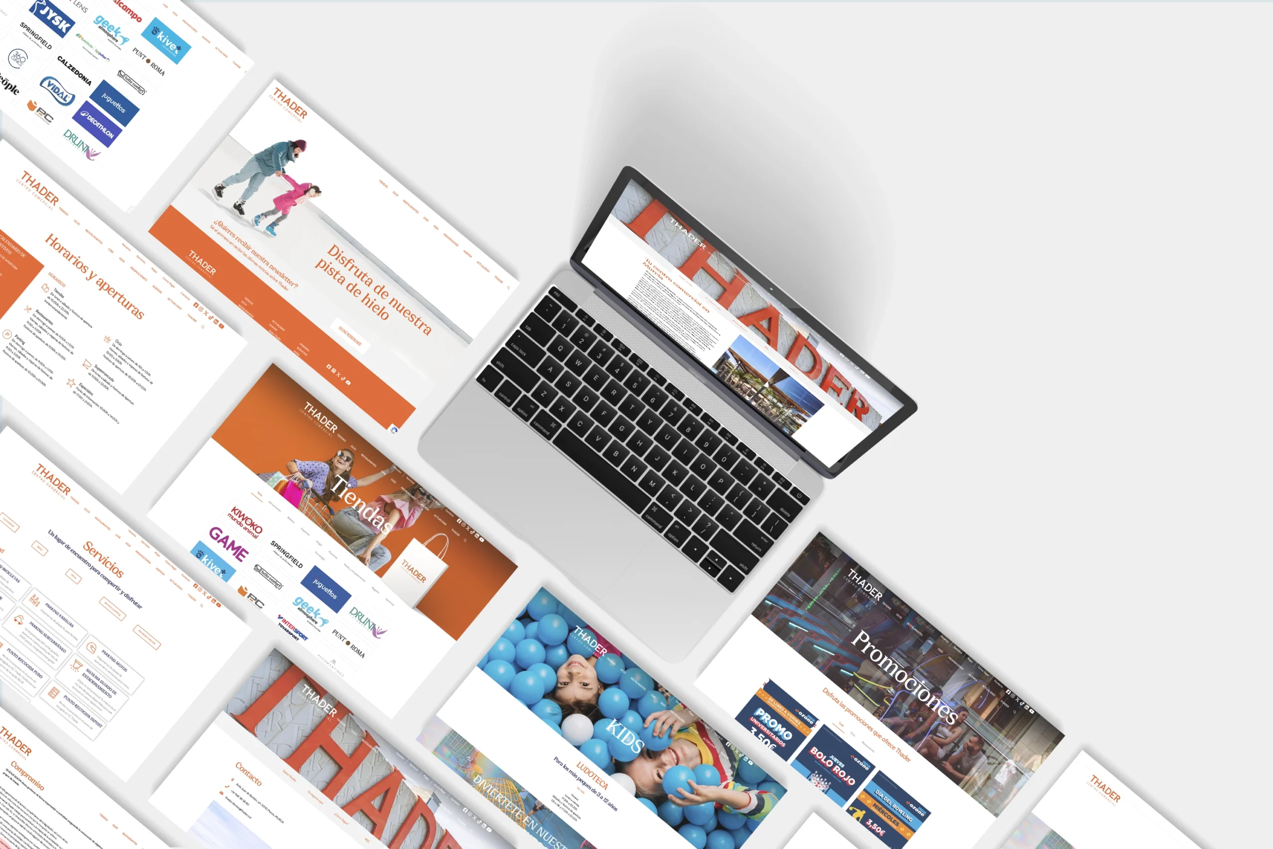 Desarrollamos un diseño base común, flexible y escalable, que permite adaptar contenidos, estilos y mensajes a cada centro sin perder coherencia de marca. Este sistema se aplicó a las webs de La Fira Centre Comercial, Centro Comercial Thader y Bahía Plaza.
